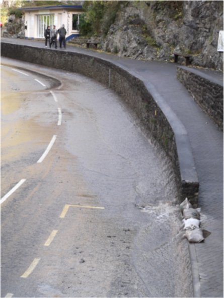 After crying off yesterday due to really grim weather and spending the afternoon cleaning and fettling the bike I braved the weather and headed out this morning. I'd wrapped up well which was fortunate as it felt a lot colder than the thermometer implied and to say that there was some water around would be an understatement. I think the picture of the road in Cheddar Gorge tells the whole tale....